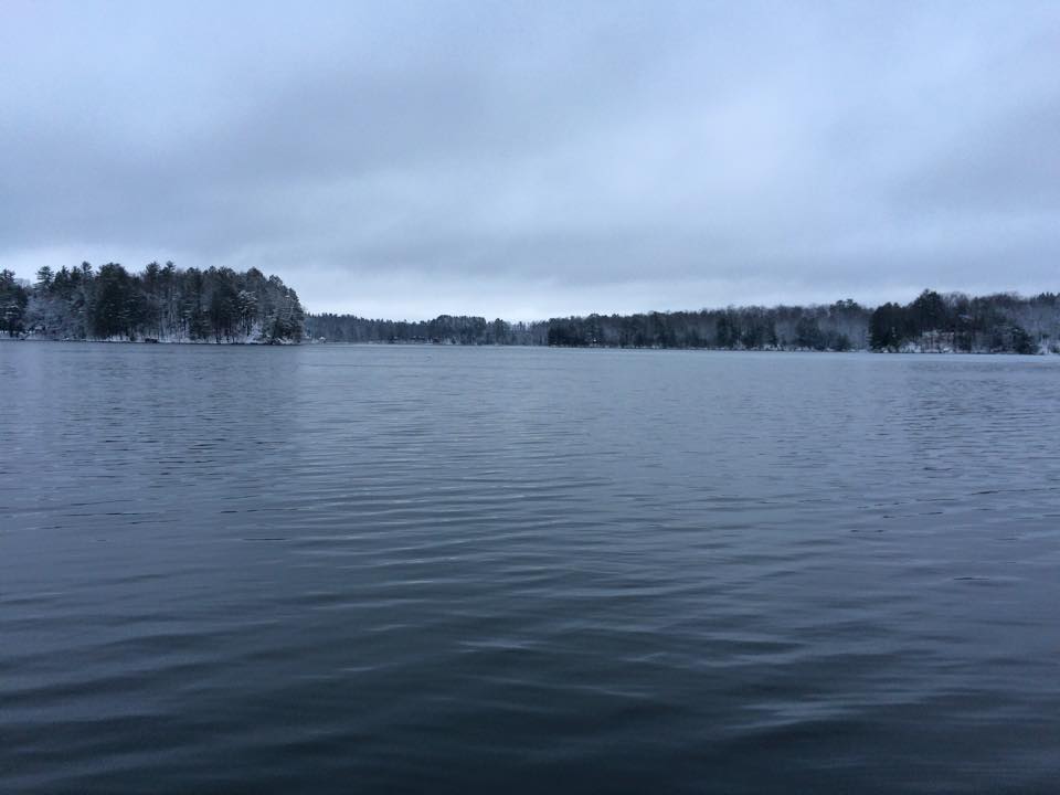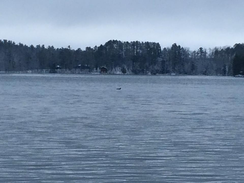 We received word today that the ice is out and a loon didn’t waste any time returning to the lake! Yes, there was a little bit of snow that fell overnight but I can already hear the boat engines revving up. Teresa Colianni sent these photos so you can see for yourself. Look closely for the loon in the second photo!